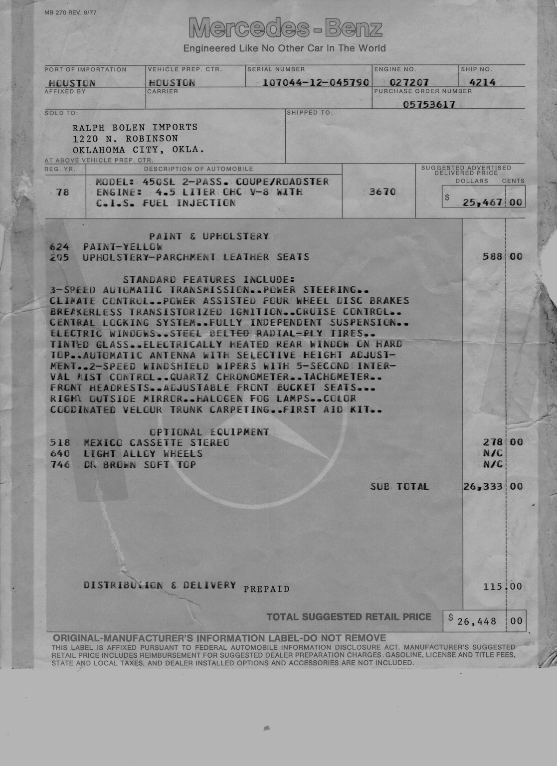 This 1978 Mercedes-Benz 450SL … Membership Required