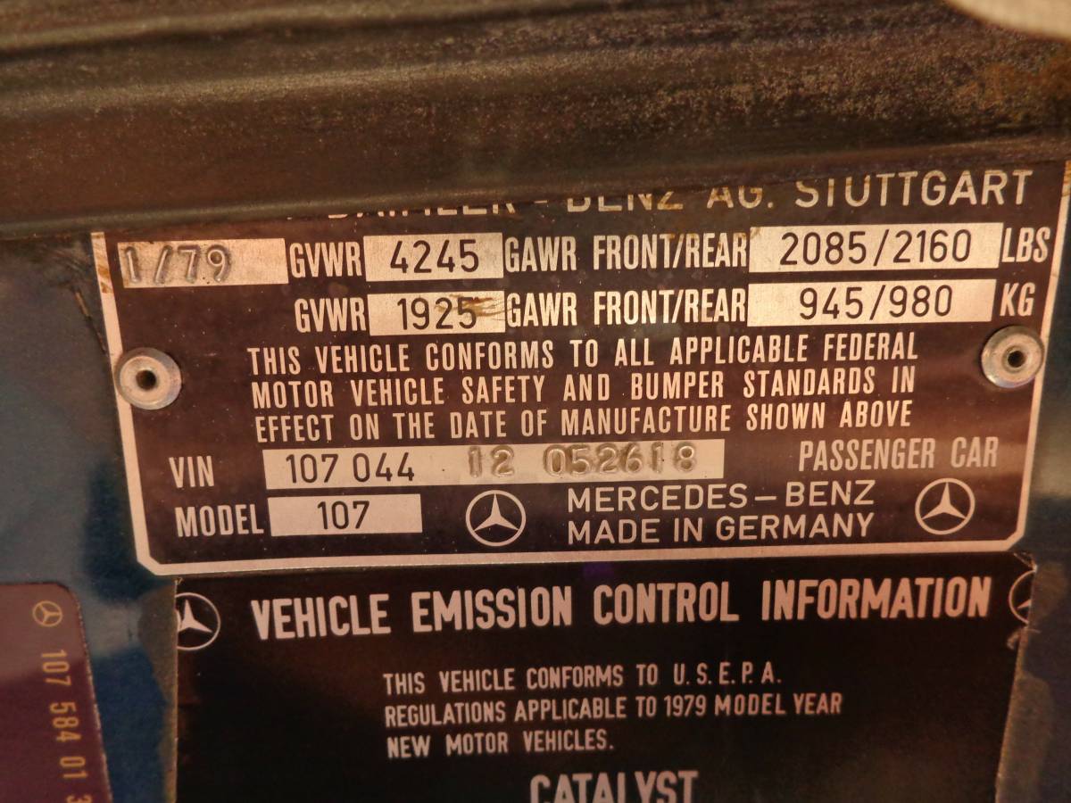 This 1979 450 SL is recorded in the Mercedes SL Registry. VIN 10704412052618 is part of the global database documenting surviving Mercedes-Benz SL vehicles, including production data and historical records.