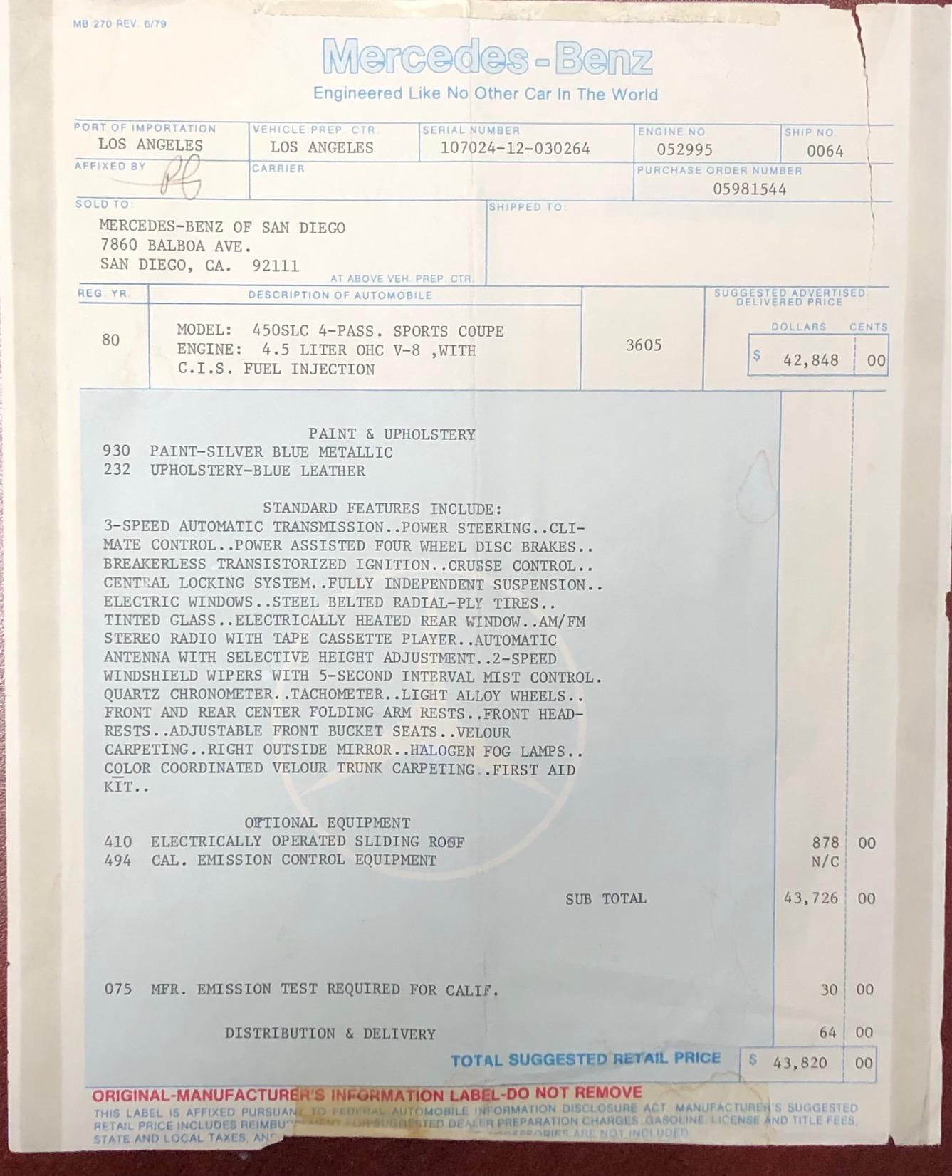 This 1980 Mercedes-Benz 450SLC… Membership Required