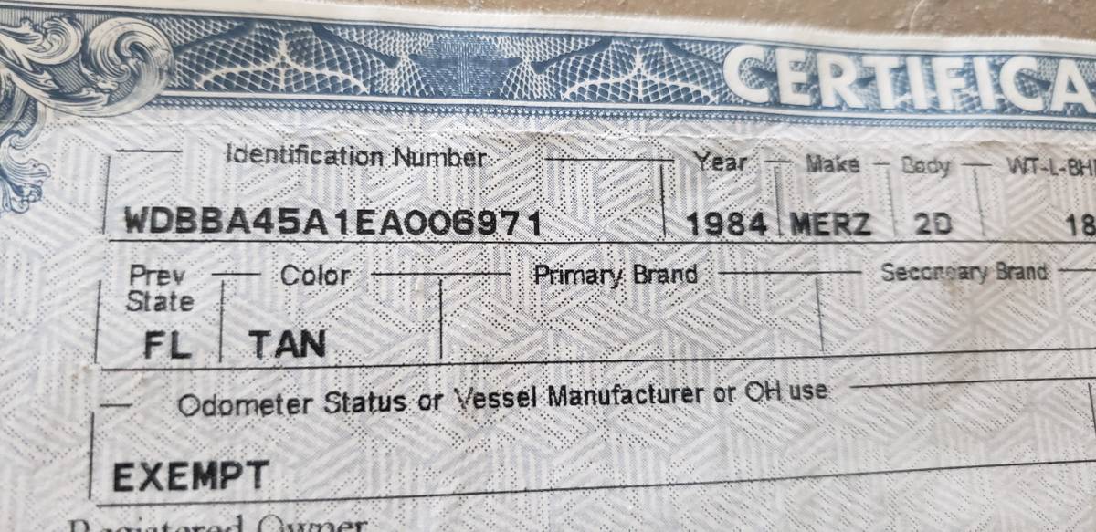 This 1984 380 SL is recorded in the Mercedes SL Registry. VIN WDBBA45A1EA006971 is part of the global database documenting surviving Mercedes-Benz SL vehicles, including production data and historical records.
