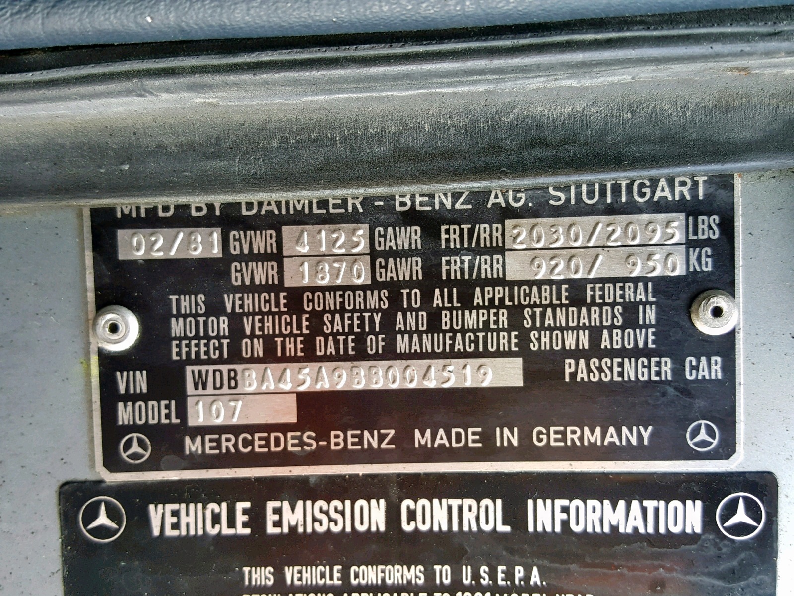 This 1981 380 SL is recorded in the Mercedes SL Registry. VIN WDBBA45A9BB004519 is part of the global database documenting surviving Mercedes-Benz SL vehicles, including production data and historical records.
