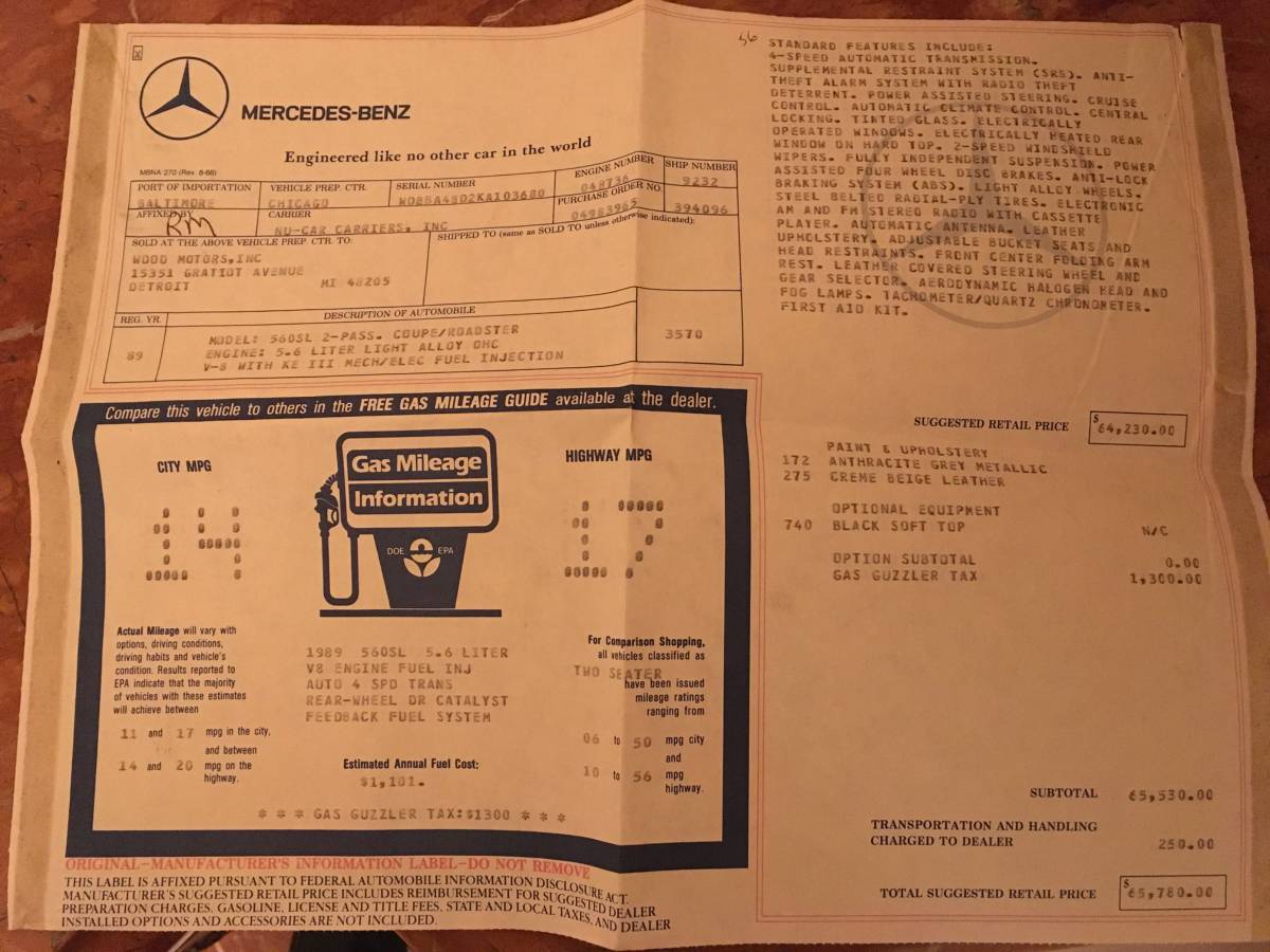 1989 560SL. 60k miles. Dark si… Membership Required