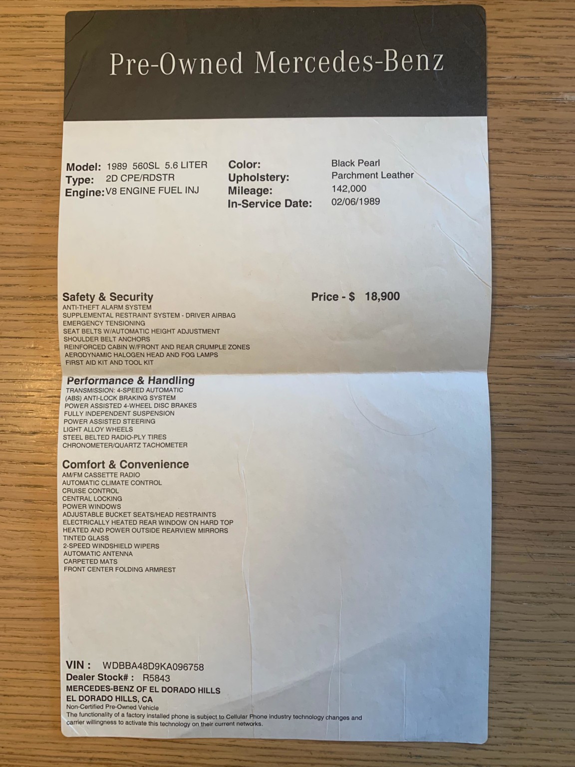 This 1989 Mercedes-Benz 560SL … Membership Required